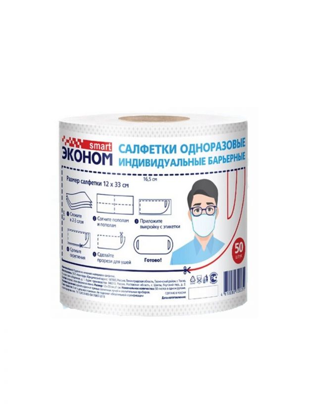 Также эти салфетки можно использовать как альтернативный продукт медицинским маскам. С помощью схемы изготовления, приложенной на упаковке, и ножниц каждый сам сможет сделать одноразовую защитную маску необходимой слойности.