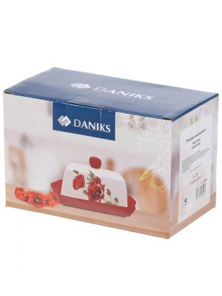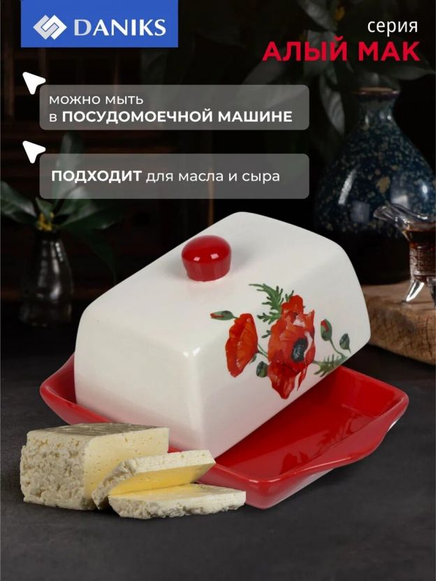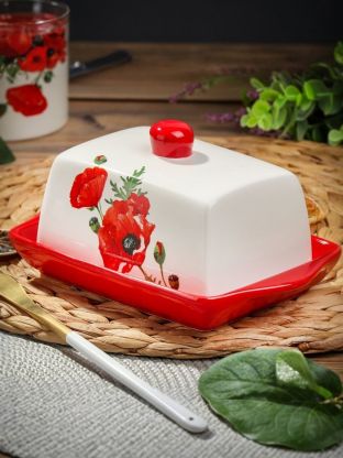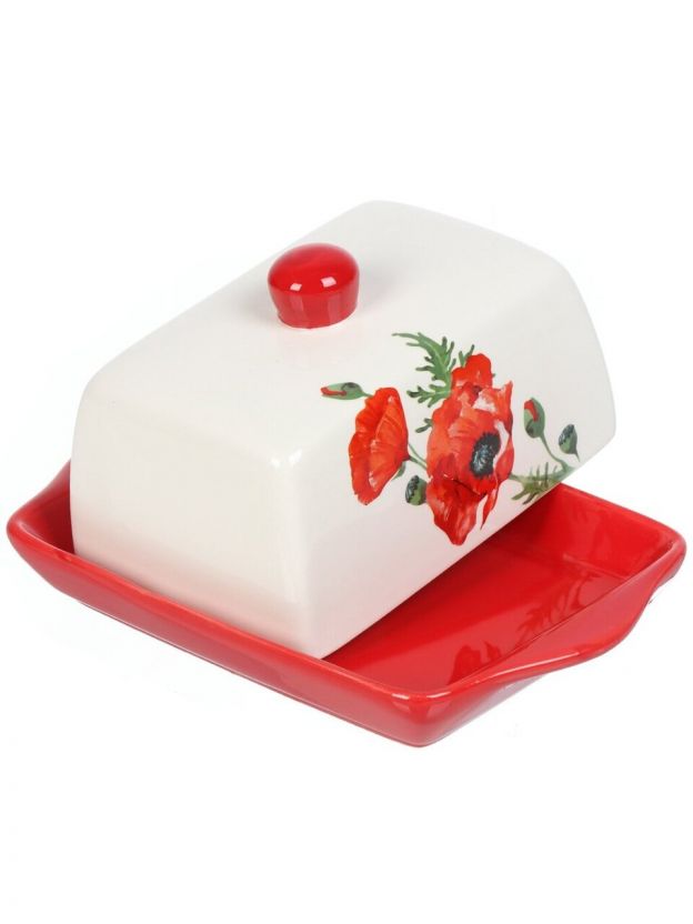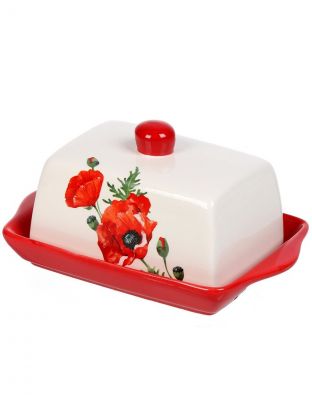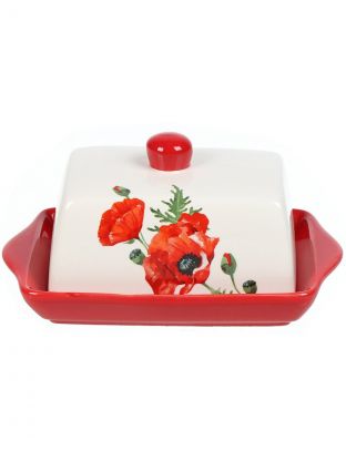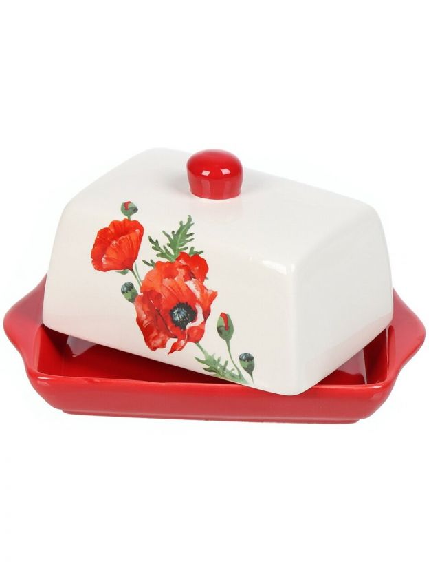 Масленка доломит, 19.7х12.5 см, крышка доломит, Daniks, Алый мак