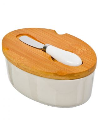 Масленка керамика, на бамбуковой подставке, Y6-6470