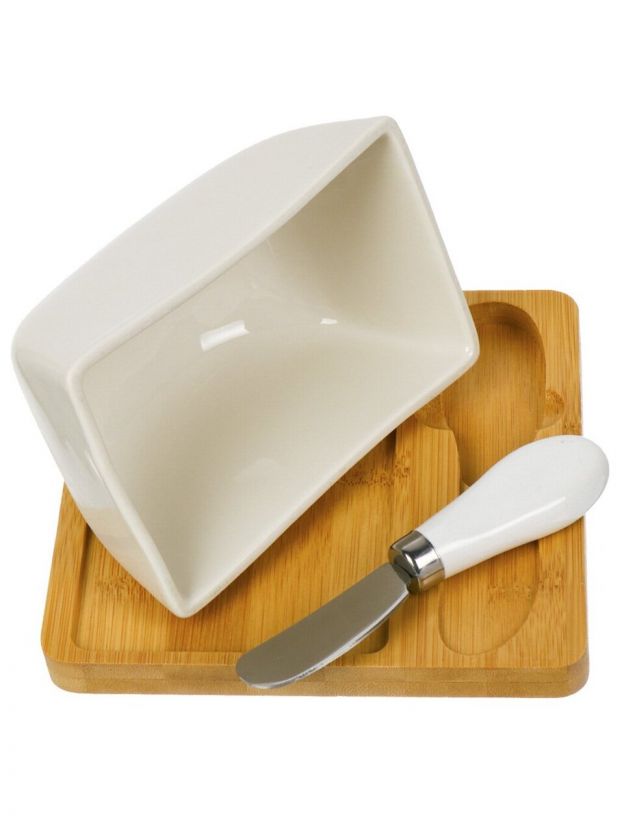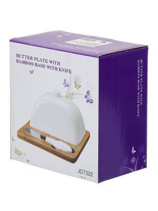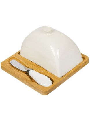 Масленка керамика, на бамбуковой подставке с ножом, Y6-6469/Y4-9191