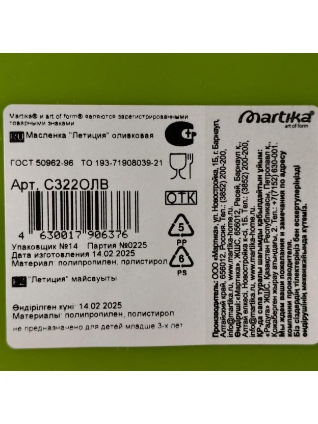 Масленка, изготовленная из пластика, предназначена для хранения масла и сыра. Она состоит из крышки и подноса. Гладкая поверхность обеспечивает легкую чистку. Защелка не позволит содержимому вывалиться из контейнера даже при случайном выскальзывании. Пищевая пластмасса приятно удивит вас прочностью, элегантным внешним видом, а также невысокой ценой.