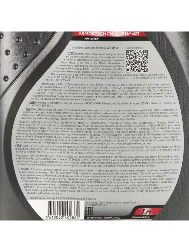 Моторное масло Лукойл Genesis Armortech CN 5W40 1 л — надёжная защита двигателя в любых условиях, экономия на обслуживании и стабильная работа зимой и летом.