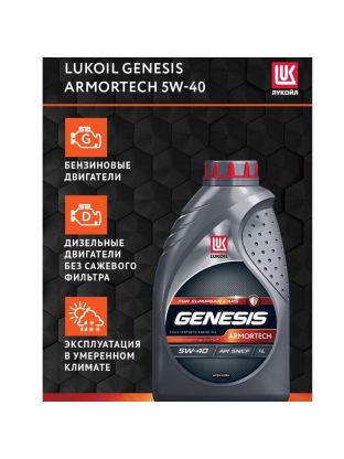 Масло моторное синтетическое, 5W40, Лукойл, Genesis Armortech, 1 л, 3148670