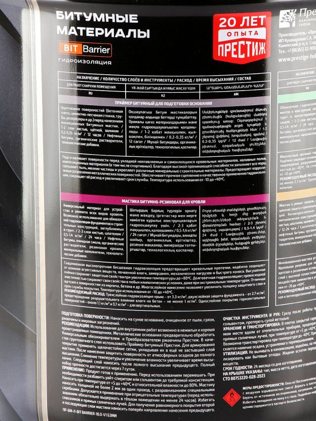 Мастика битумная Престиж для фундамента 17 кг — надежная гидроизоляция с расходом от 0,5 кг/м2, подходит для любых условий и типов оснований.