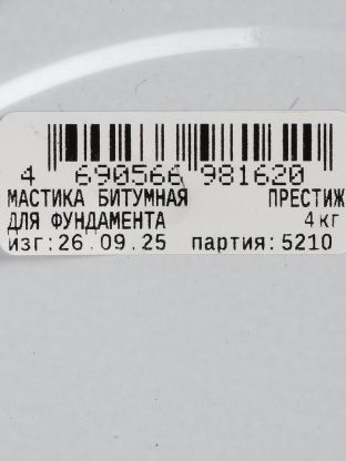Битумная мастика Престиж для фундамента 4 кг — надежная гидроизоляция дома и дачи с расходом от 0,5 кг/м2, устойчива к перепадам температуры и влаге.