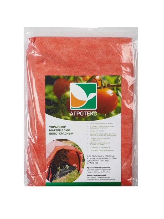 Материал укрывной 60 г/м2, Двойная защита, 3х5 м, Агротекс, бело-красный, 32.01.57.01.27.060.0005.3000.00