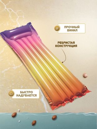 Яркий радужный дизайн поднимает настроение и создает атмосферу праздника на воде. Такой аксессуар станет отличным дополнением к летнему отдыху, подчеркнет индивидуальность и стиль владельца. Матрас подходит для использования на открытых водоемах и в бассейне, что делает его универсальным решением для дома, дачи или путешествий.