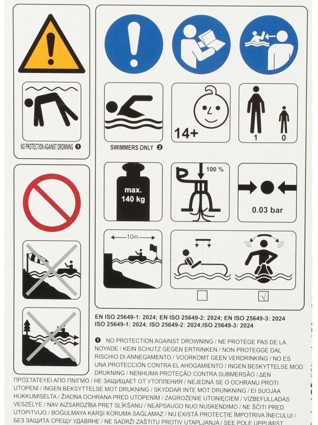 Максимальная грузоподъемность составляет 140 кг — матрас подходит для взрослых любого телосложения, обеспечивая стабильность и безопасность на воде.