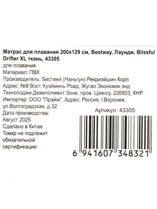 Матрас для плавания 200х129 см, Bestway, Лаундж Blissful Drifter XL ткань, 43305