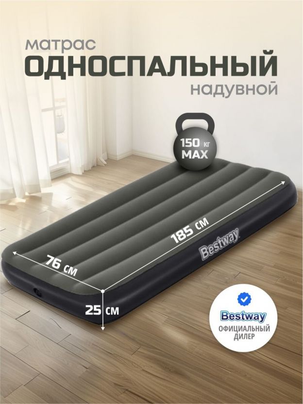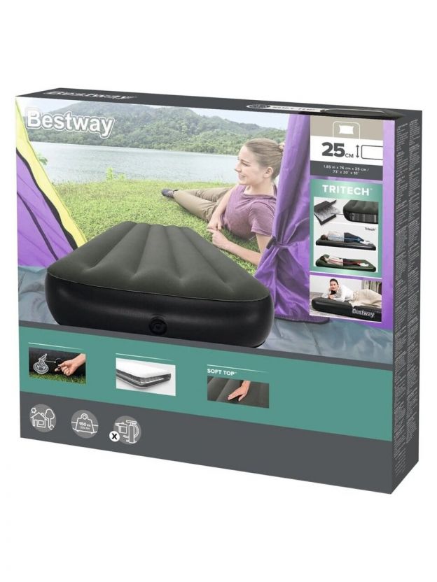 Матрас надувной Bestway, 185х76х25 см, Tritech Air, 6713K, без насоса, флокированный, 150 кг