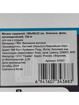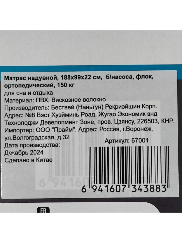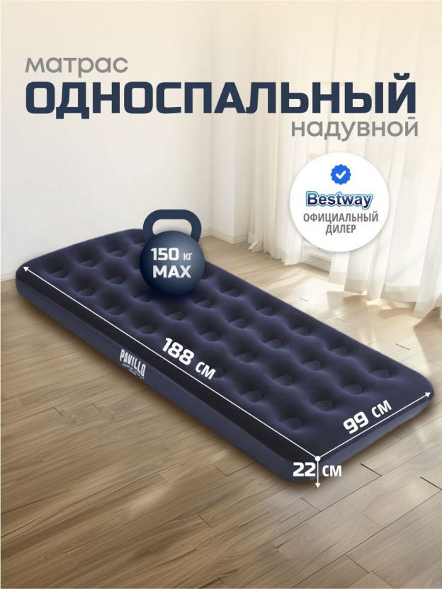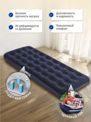 Матрас надувной Bestway, 188х99х22 см, 67001/010164BW, без насоса, флокированный, ортопедический, 150 кг