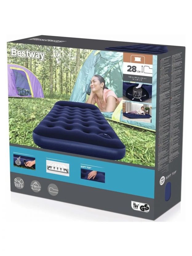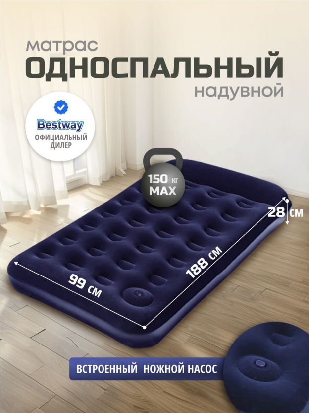 Матрас надувной Bestway, 188х99х28 см, 67224, насос встроенный, ножной, флокированный, 150 кг