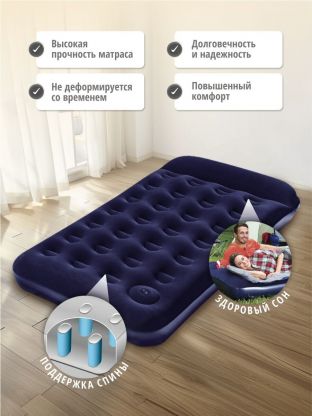 - Встроенный насос быстро надувает матрас, обеспечивая вам возможность заснуть в любое время.