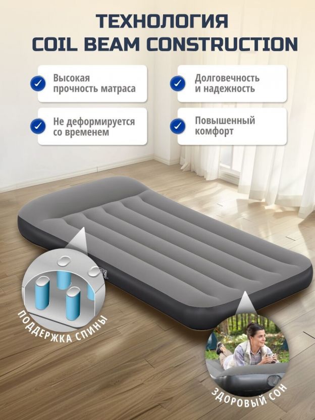 Представляем великолепное решение для комфортного отдыха и сна — надувной матрас Bestway, который станет незаменимым спутником в путешествиях и на даче. Его элегантный серый цвет и продуманная конструкция обеспечат не только удобство, но и стильное дополнение к вашему жилому пространству.