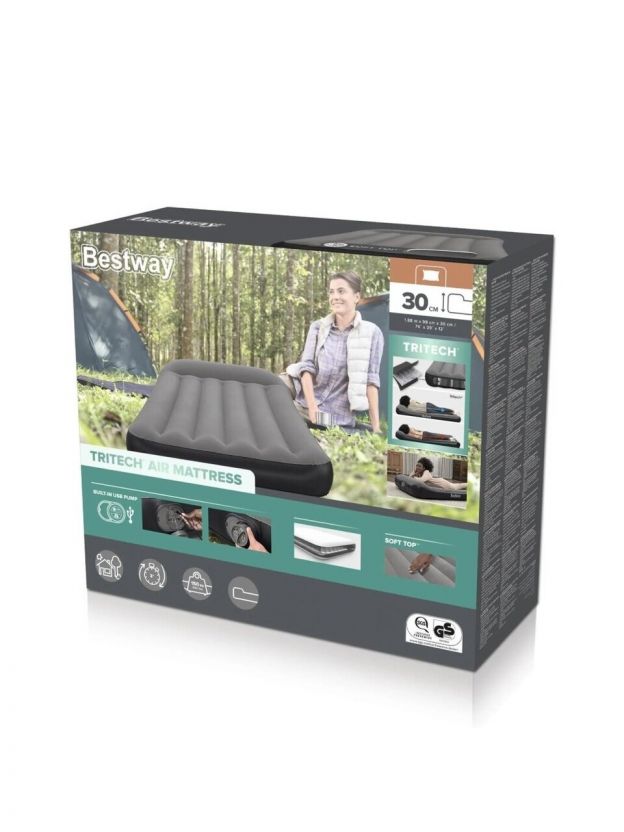 Матрас надувной Bestway, 188х99х30 см, 671BQ, насос встроенный, электрический, флокированный, 150 кг