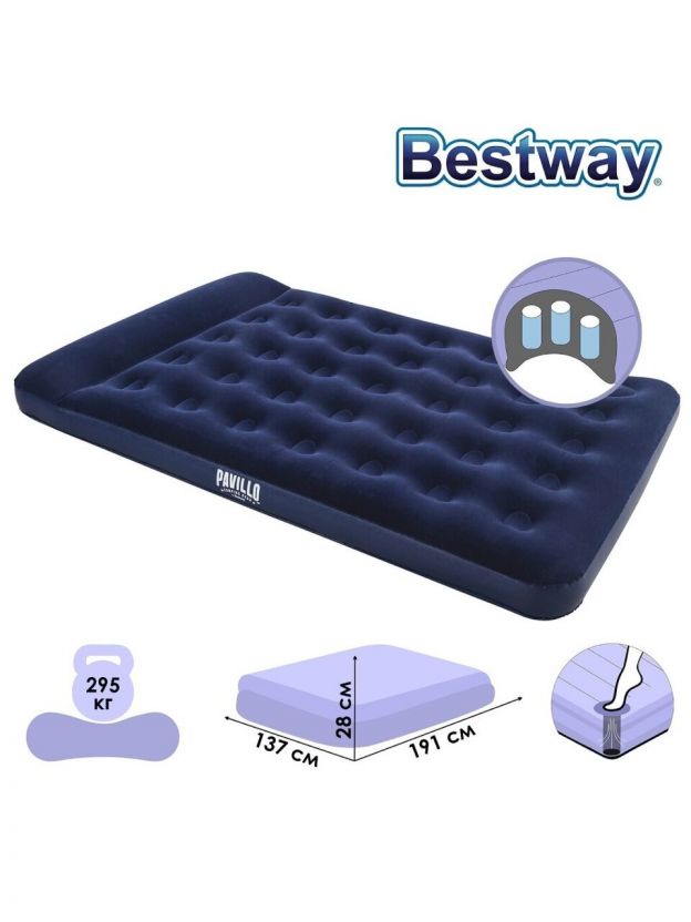 Матрас надувной Bestway, 191х137х28 см, 332029/67225, насос встроенный, ножной, флокированный, 300 кг