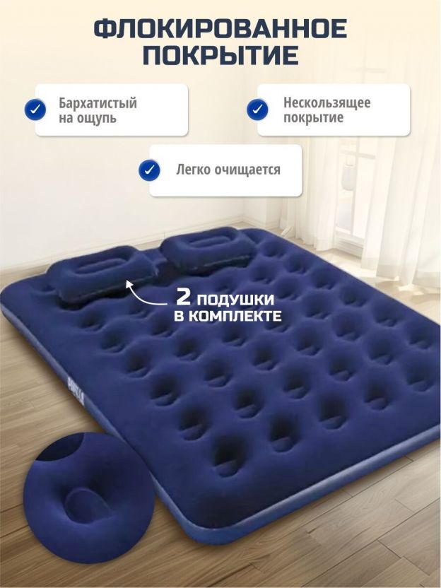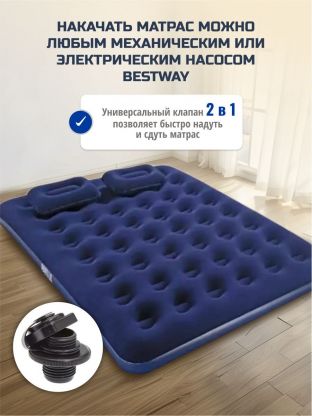 Матрас надувной Bestway, 203х152х22 см, 67374/005653BW, насос внешний, ручной, флокированный, с подушками, 300 кг