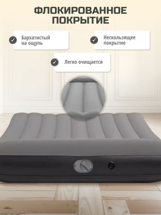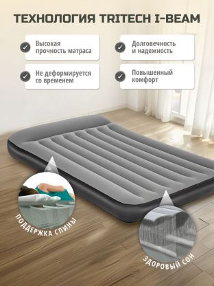 - простота использования: встроенный электрический насос позволяет быстро надувать и сдувать матрас без лишних усилий;