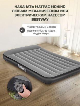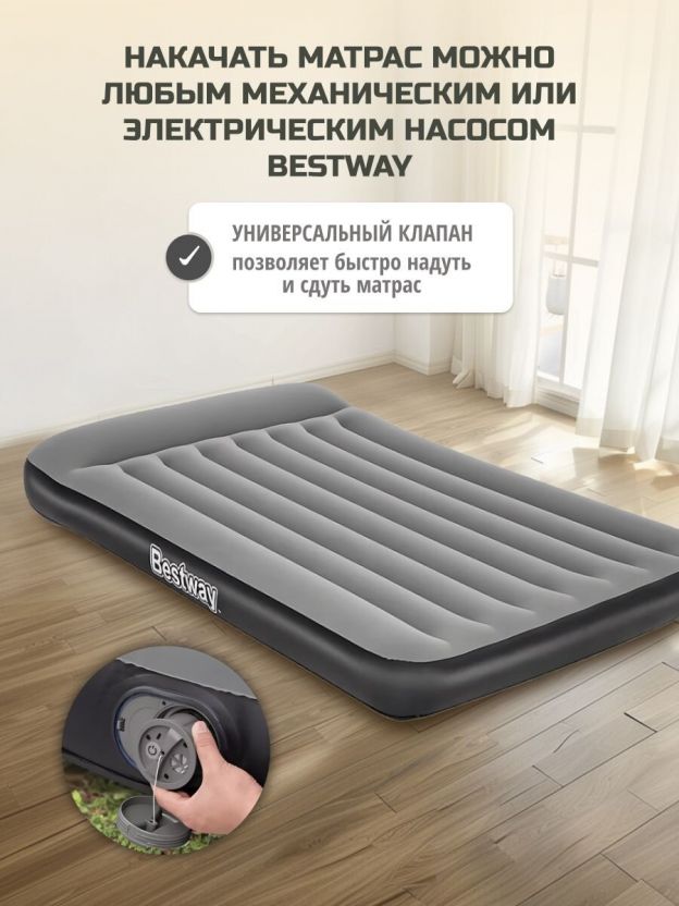 Матрас надувной Bestway, 203х152х30 см, 671BS, насос встроенный, электрический, флокированный, 300 кг