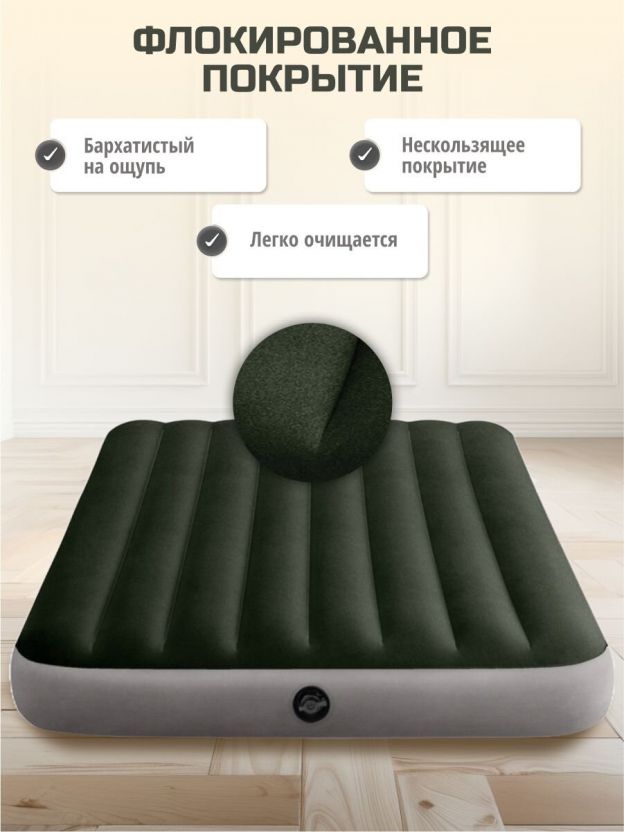 Матрас надувной Intex, 191х137х25 см, 64778, насос внешний, на батарейках, флокированный, 273 кг