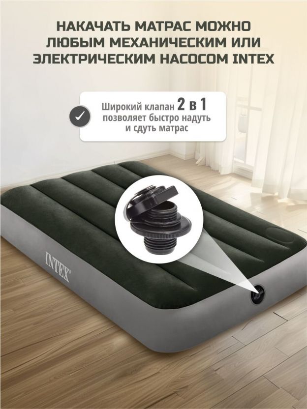 Матрас надувной Intex, 191х76х25 см, 64760, насос встроенный, ножной, 136 кг