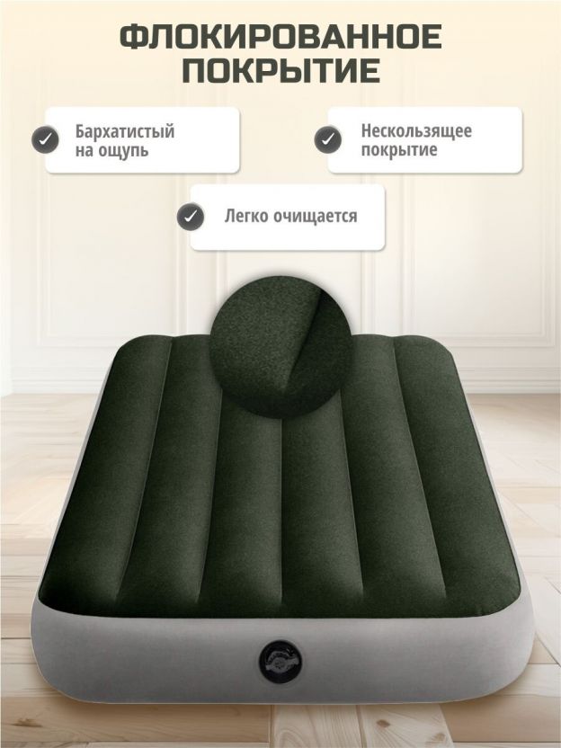 Матрас надувной Intex, 191х99х25 см, 64777, насос внешний, на батарейках, флокированный, 136 кг