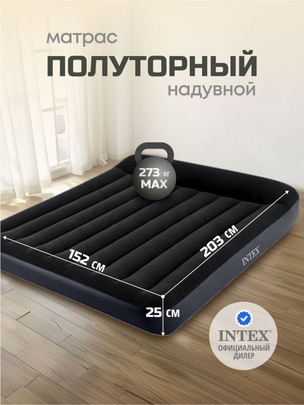 Матрас надувной Intex, 203х152х25 см, 64143, без насоса, флокированный, 273 кг