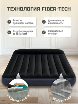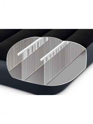 Вместо традиционных перегородок из ПВХ, Intex использует большое количество высокопрочных волокон, что предотвращает их растяжение и деформацию в процессе использования. Благодаря этому, матрас не проминается и не продавливается, обеспечивая здоровый и комфортный сон.