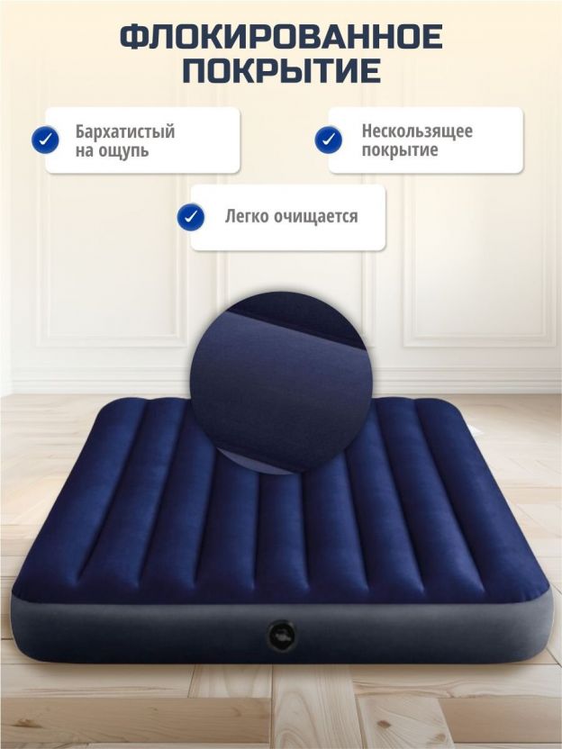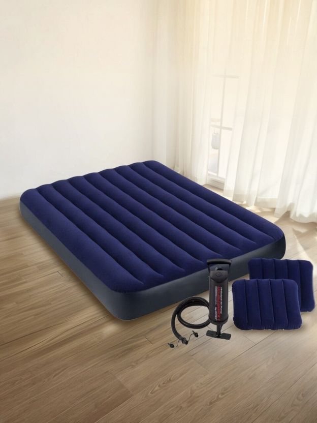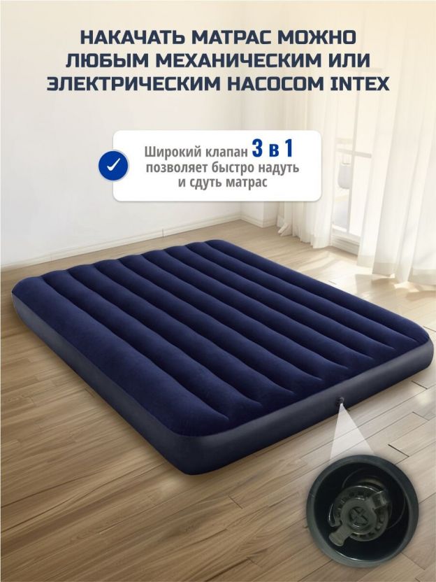 Матрас надувной Intex, 203х152х25 см, 64765, насос внешний, ручной, флокированный, с подушками, 273 кг