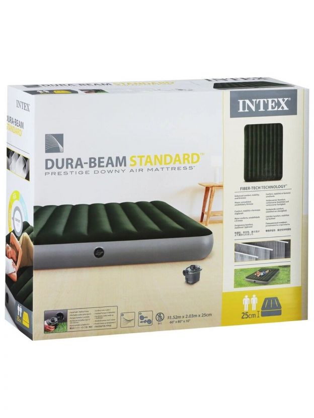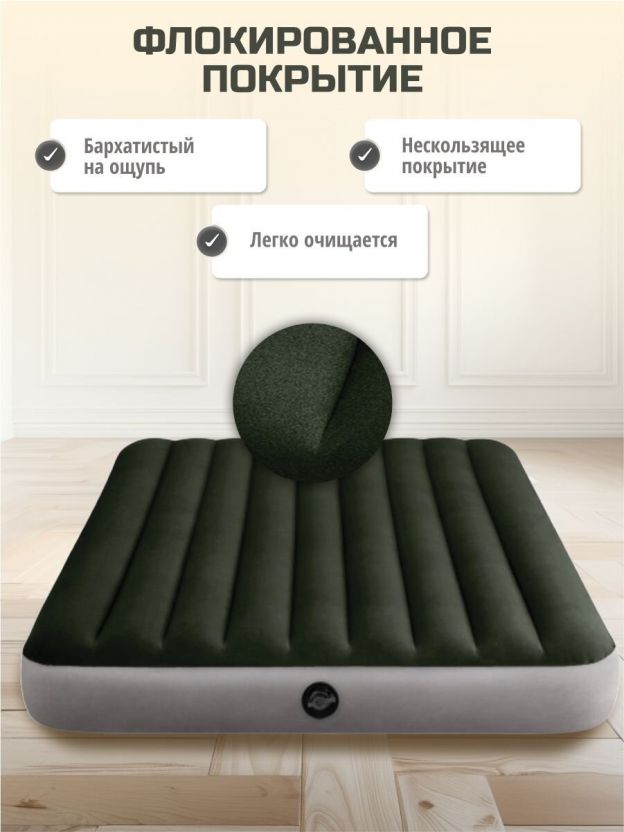 Матрас надувной Intex, 203х152х25 см, 64779, насос внешний, на батарейках, флокированный, 273 кг