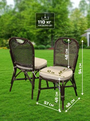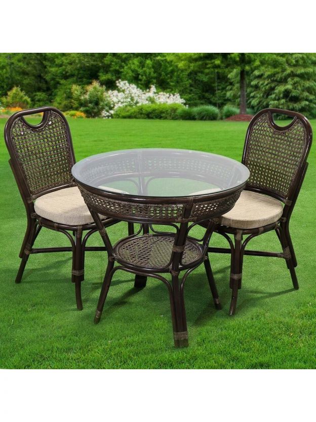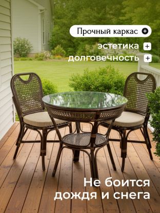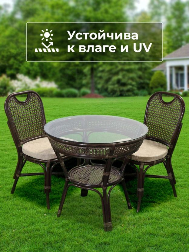 Мебель садовая Costa Brava, коричневая, стол, 81х81х76 см, 2 стула, подушка бежевая, 110 кг, IND09
