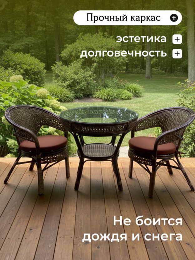 Мебель садовая Флоренция Мини, бежево-шоколадная, стол, 80.5х81х76 см, 2 кресла, подушка шоколадная, 110 кг, IND07WG