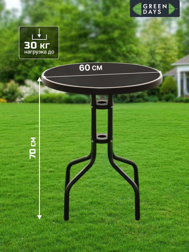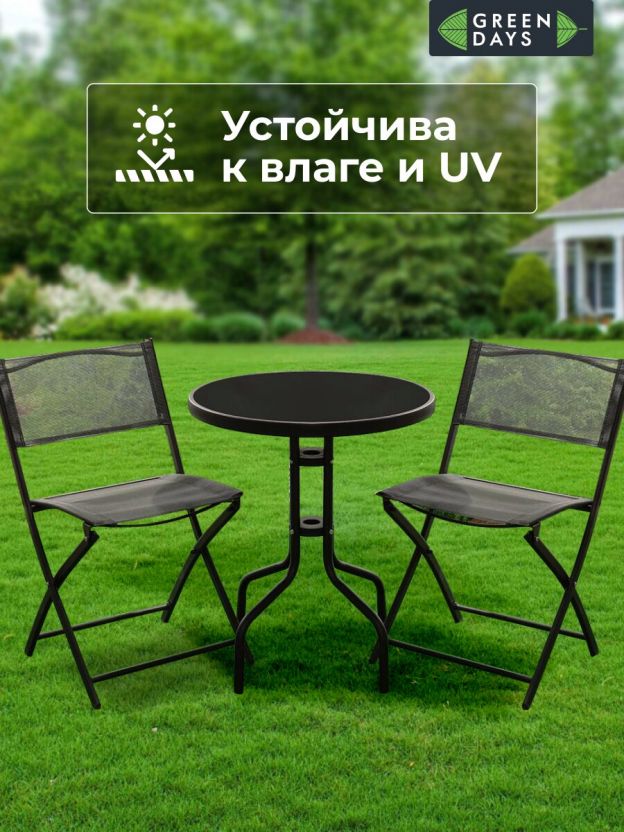 Мебель садовая Green Days, Дуэт, черная, стол, 60х60х70 см, 2 стула, 80 кг, YTCT002