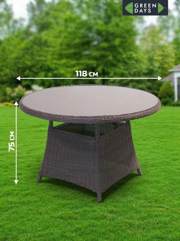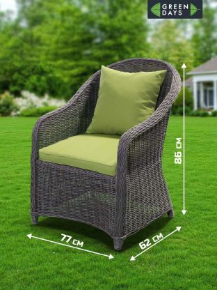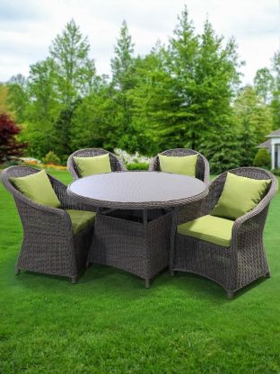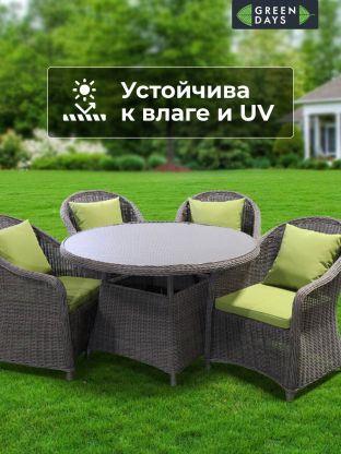 Мебель садовая Green Days, Элит Премиум, серая, стол, 118х118х75 см, 4 кресла, подушка зеленая, CYH1830W-1