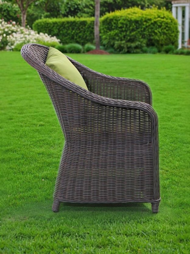 Роскошный комплект плетеной мебели станет отличным дополнением для загородного дома или дачи. Комплект состоит из четырех кресел с подушками и стола со столешницей из стекла. Выполнен из искусственного ротанга, устойчивого к физическому и климатическому воздействию. Отлично подходит для летней веранды на даче. Цвет подушек освежит интерьер, а воздушное плетение добавит уюта.