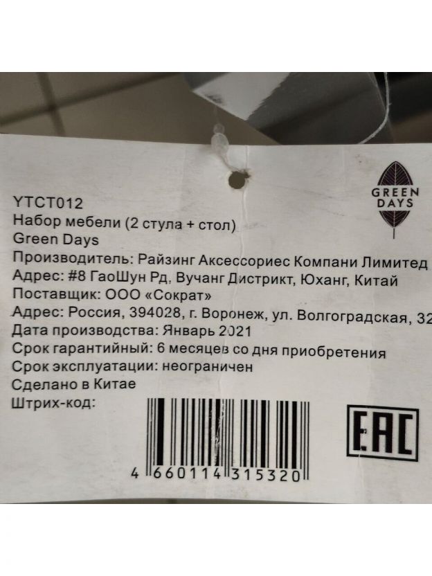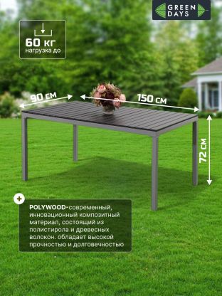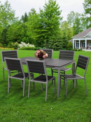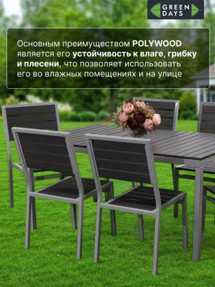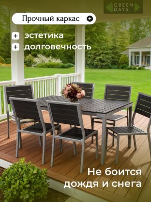 Мебель садовая Green Days, Эвелина, черная, стол, 150х90х72 см, 6 стульев, 120 кг, YTCT012