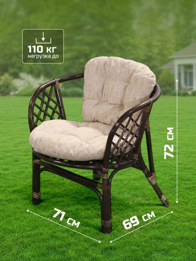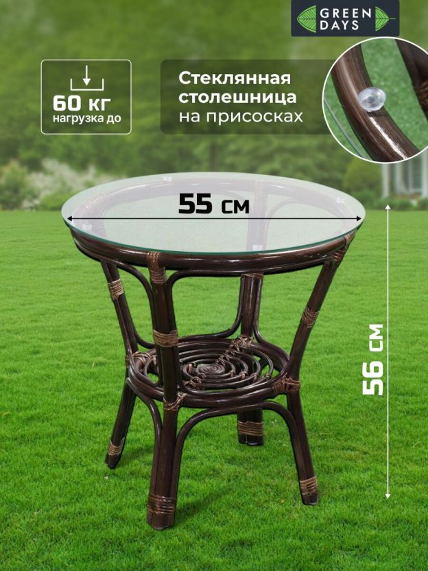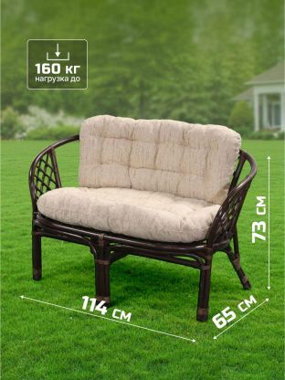 Мебель садовая Green Days, Мальдивы, кофейная, стол, 55х55х56 см, 2 кресла, 1 диван, подушка бежевая, 110 кг, 114х73х65 см, IND12