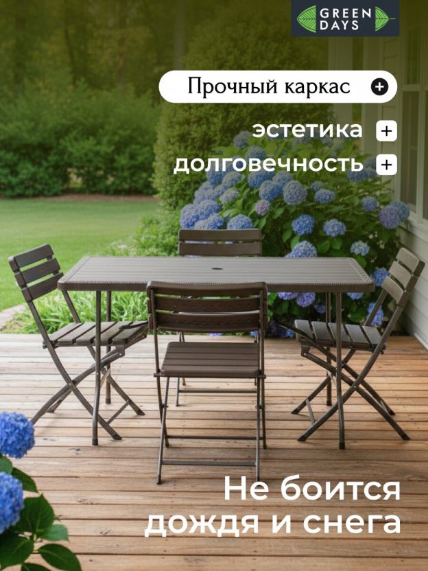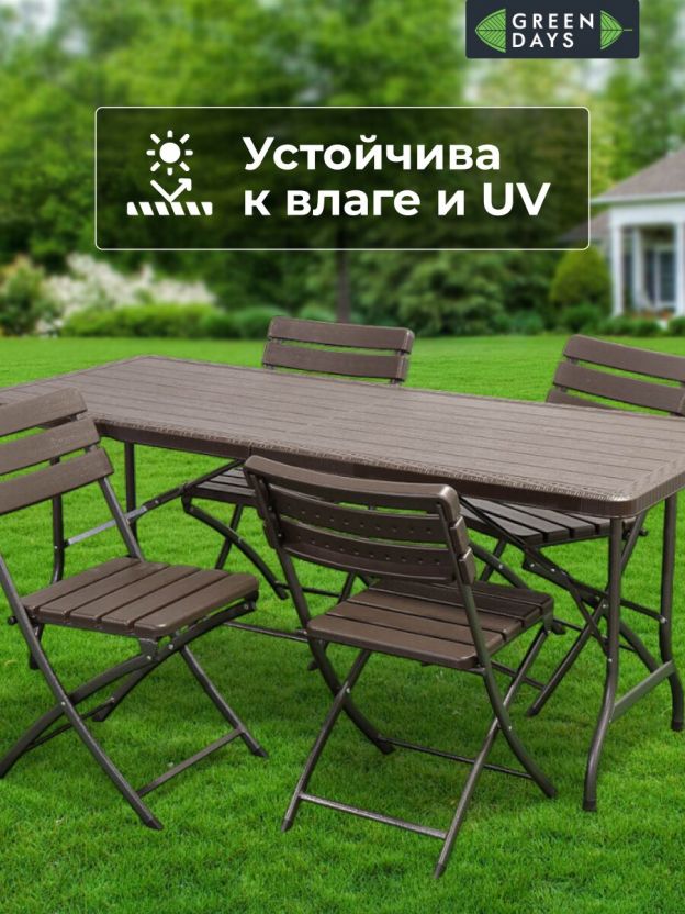Мебель садовая Green Days, Уют, коричневая, стол, 180х75х74 см, 4 стула, 100 кг, MZK-180+YC-043 SET (1+4)
