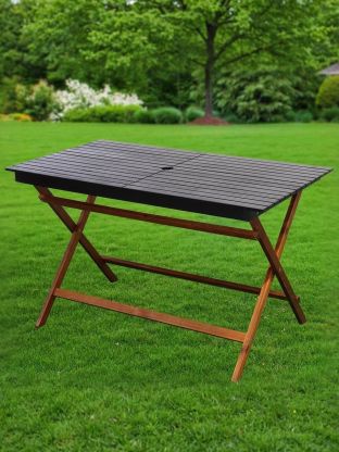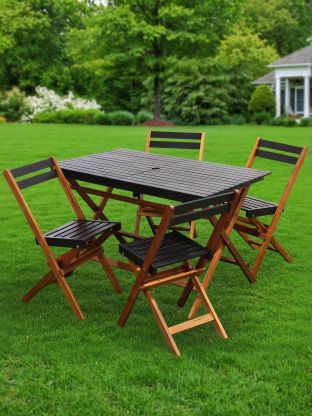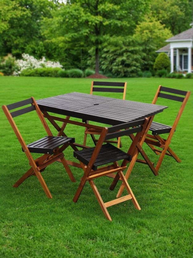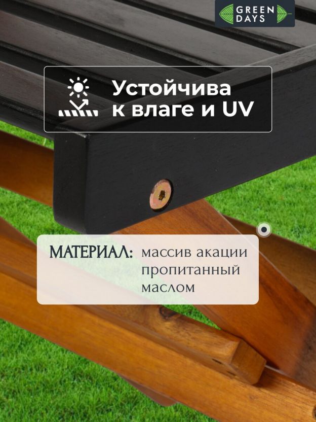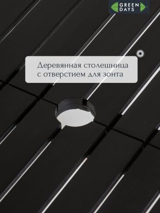 • Комплект садовой мебели реечной пропитан маслом, верхняя часть - окрашена в черный цвет;