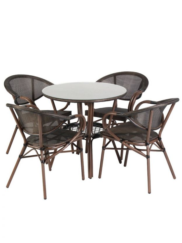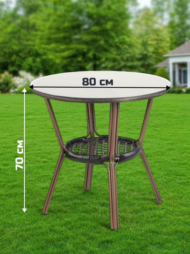 Садовая мебель Либерия – стильное и практичное решение для создания уютной обстановки на даче, в саду, на террасе или уличной зоне кафе. Комплект из пяти предметов включает круглый стол диаметром 80 см и четыре удобных стула, что идеально подходит для дружеских встреч, семейных обедов или отдыха на свежем воздухе. Благодаря лаконичному дизайну и универсальному коричневому цвету мебель гармонично впишется в любой ландшафт и легко сочетается с другими элементами экстерьера.