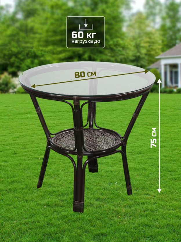 - Стол: диаметр 80 см, высота 75 см.