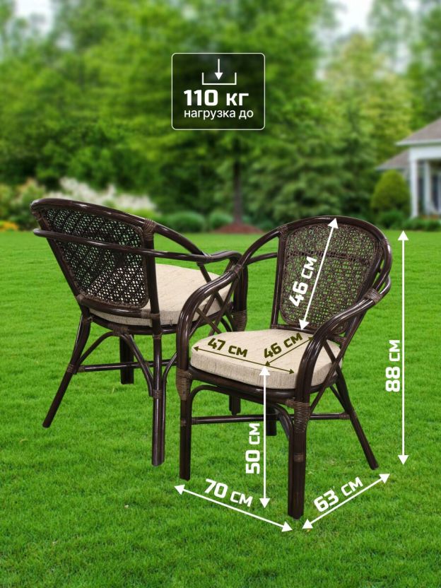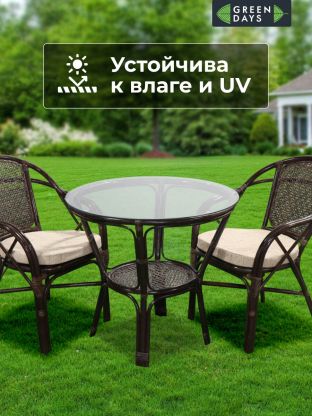 Мебель садовая Мария, кофейная, стол, 80х80х75 см, 2 кресла, подушка бежевая, 110 кг, IND10