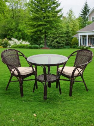 Набор садовой мебели Мария включает столик с поверхностью из стекла, а также два кресла.