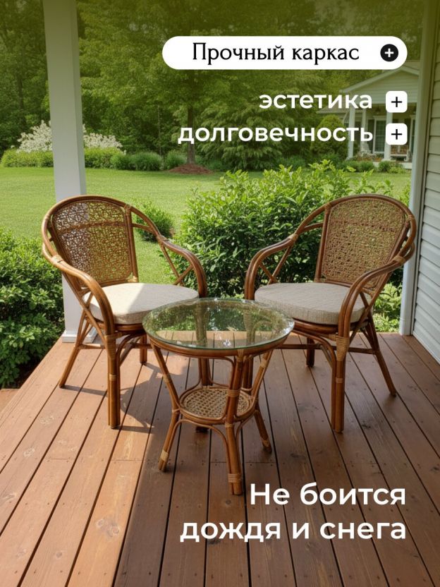 Мебель садовая Мария, медовая, стол, 55х55х56 см, 2 кресла, подушка бежевая, 110 кг, IND11