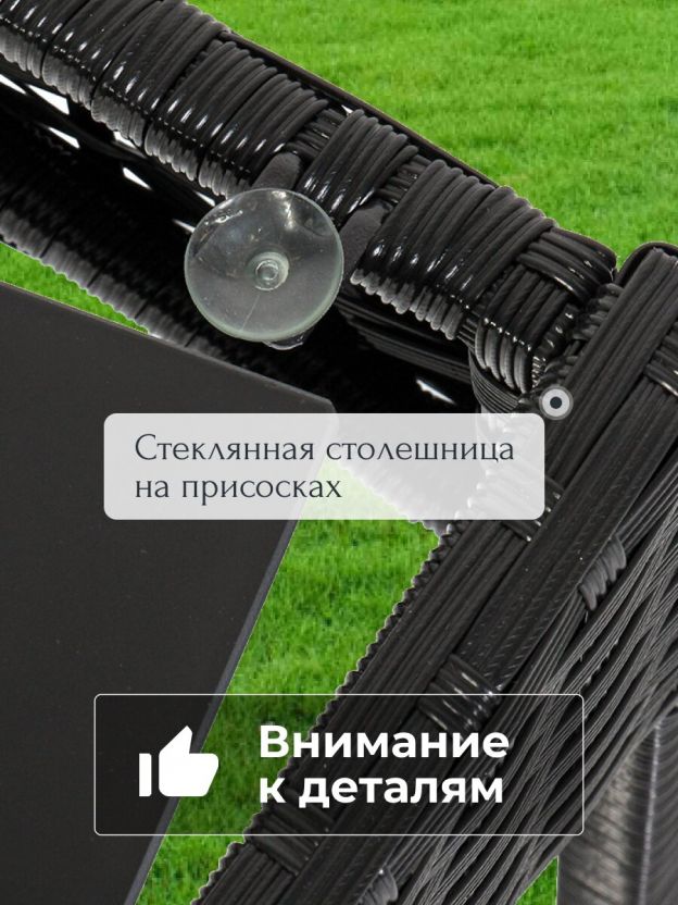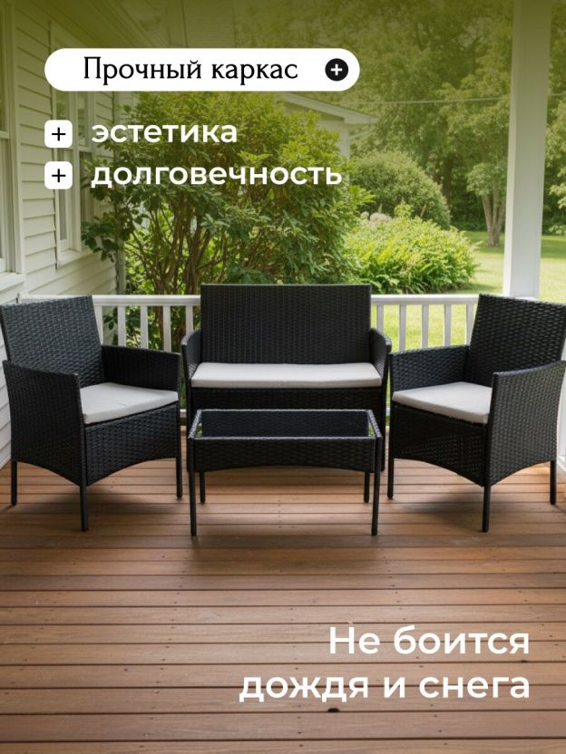 - Превосходный комфорт: эргономичные кресла и диван обеспечивают максимальное удобство, позволяя наслаждаться длительными беседами или чтением на свежем воздухе.