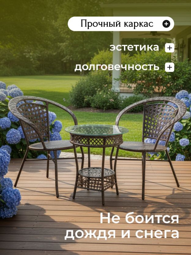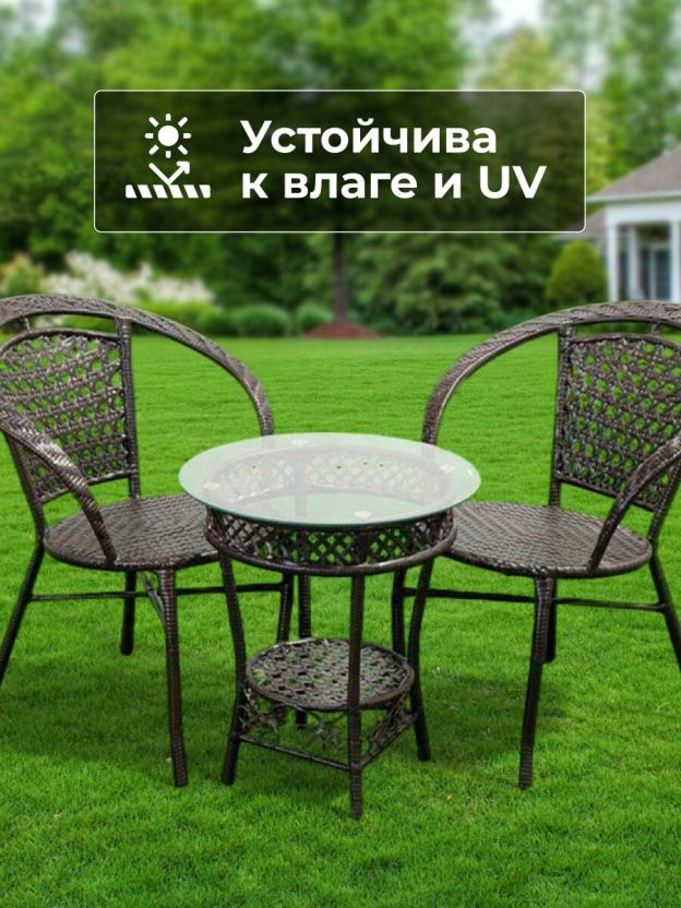 Мебель садовая Отдых, коричневая, стол, 55х55х58 см, 2 кресла, 100 кг, Y6-1801