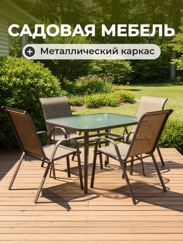 Мебель садовая Сити, стол, 120х80х72 см, 4 кресла, 150 кг, C010025