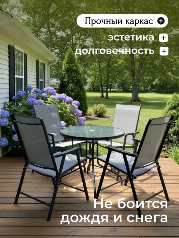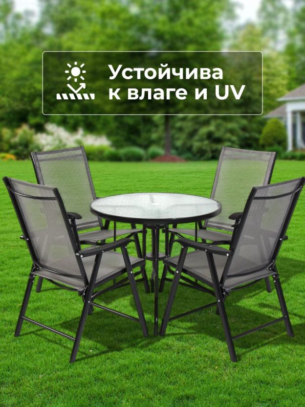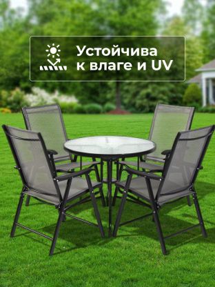 Комплект "Таллин" предлагает не только стильный внешний вид, но и практичность в использовании. Благодаря складной конструкции, мебель легко складывается и убирается, что особенно удобно для хранения в зимний период или при необходимости освободить пространство. Водонепроницаемость материалов гарантирует долговечность и сохранение эстетичного вида даже при частом использовании на улице.