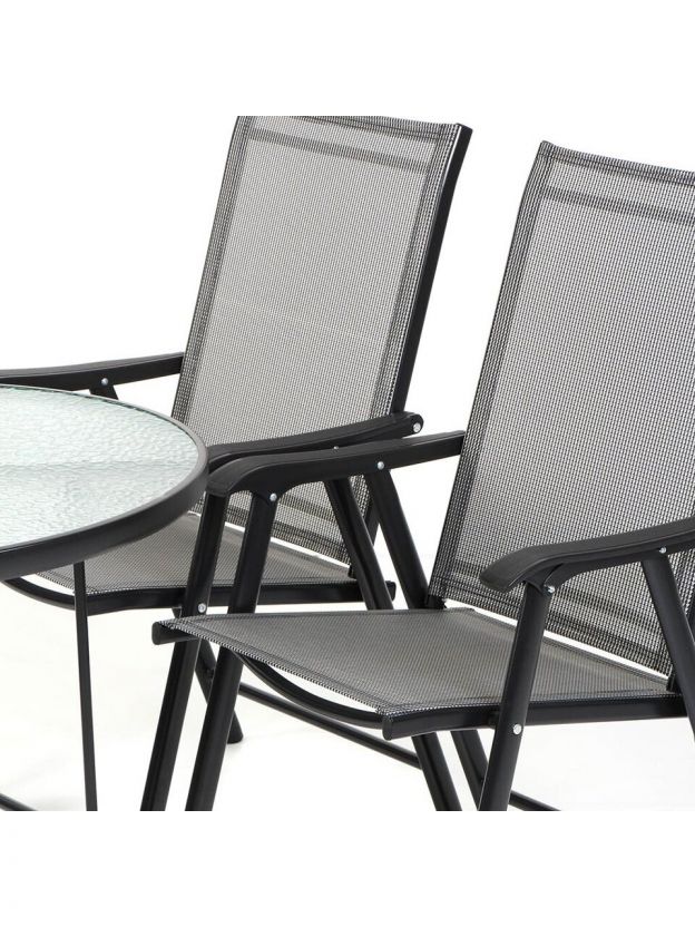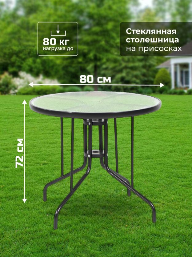 - Элегантный дизайн: черный цвет и круглая форма стола придают комплекту современный и стильный вид.