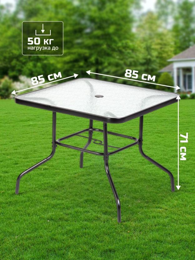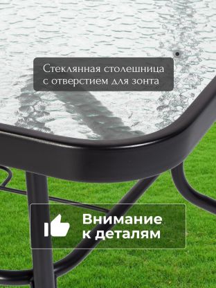 - Квадратный стол с отверстием для зонта